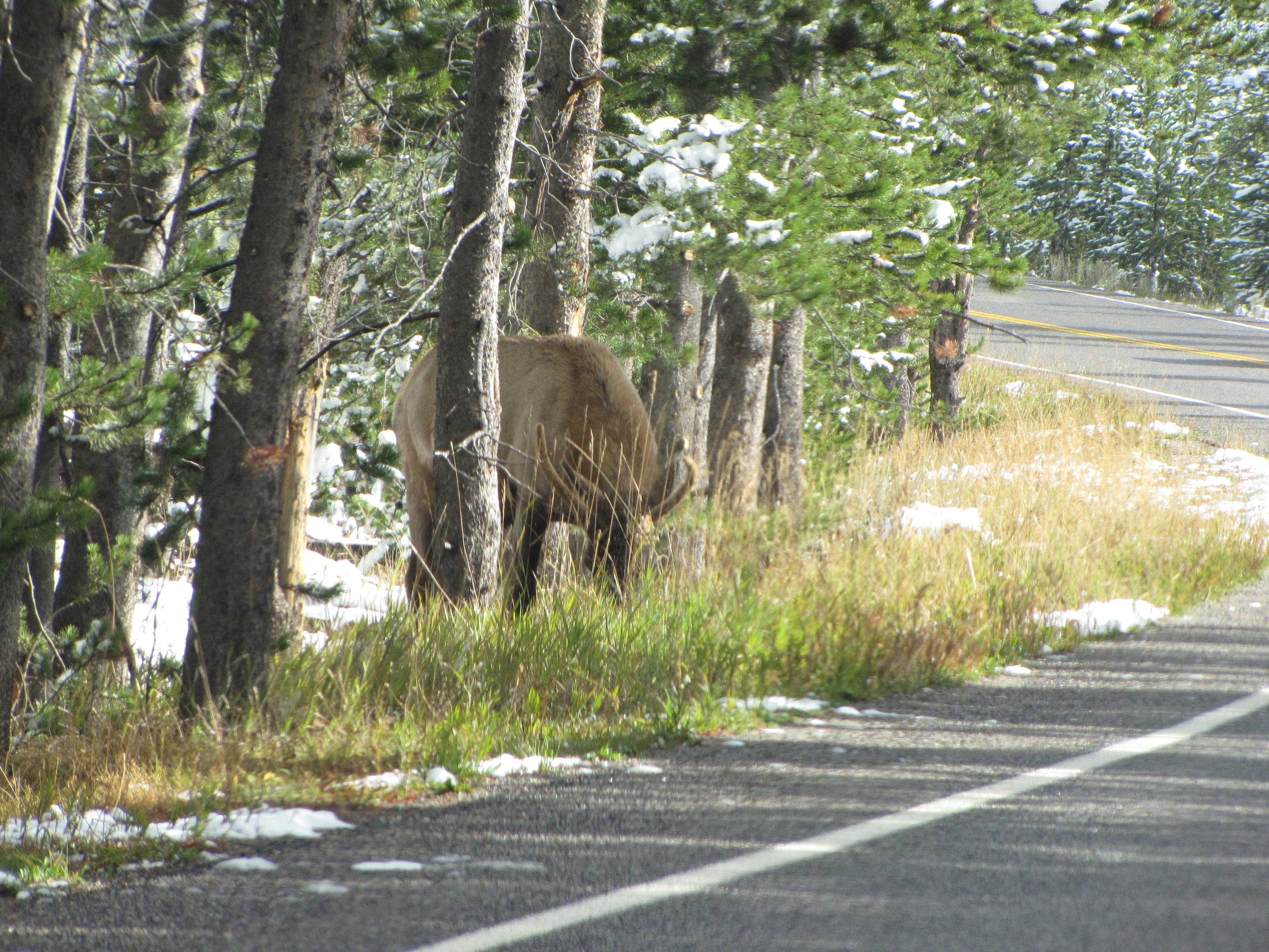 Either an elk or a moose? Can’t be a moose….that’s how unused to seeing that kind of critter I am-I have no idea. I know it isn’t a bear-or a duck.