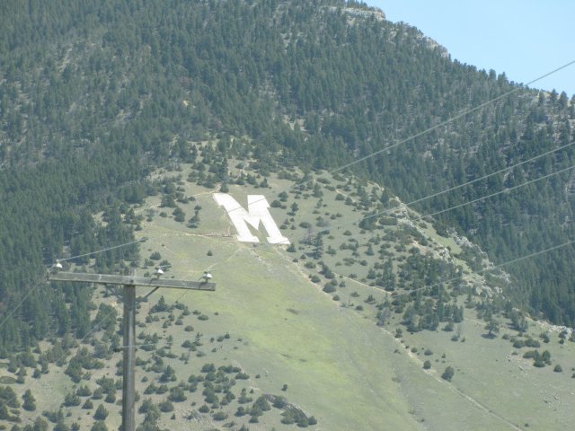 Then we passed beneath the “College M”, a 250-by-100-foot limestone majuscule M (yeah, I had to look up that word…it means “large lettering, either capital or uncial, in which all the letters are usually the same height.”) built into the side of Old Baldy within sight of Bozeman.