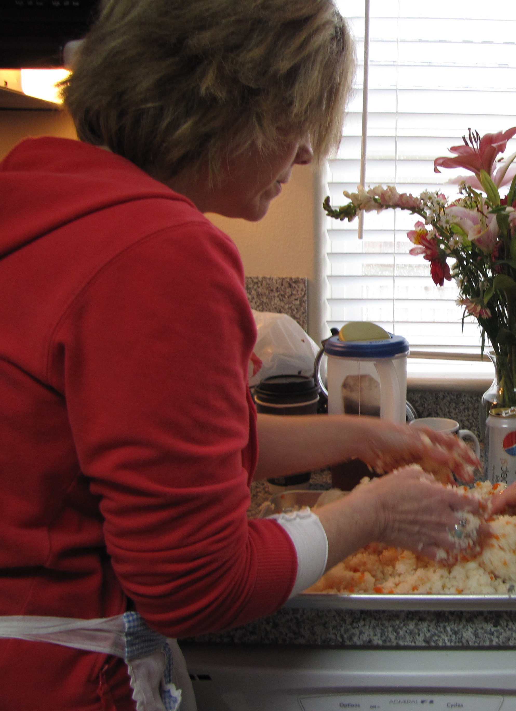 So back in February, 2009, my Gathering friends decided they’d like to have a sushi-making day.  Plenny times I’d bring cone sushi to our potlucks, and they loved it so much they wanted to learn how to make it themselves.