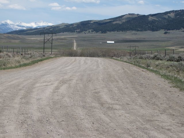 This is near Flathead Creek Road, with its view of the Crazy Mountains.  I can do this, and show you a photo looking back the way we’ve come.