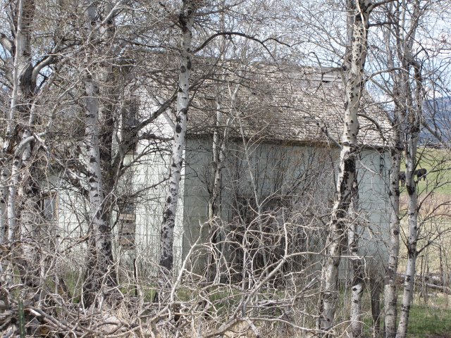 Further on, we saw another deserted house, this one framed by aspen trees.