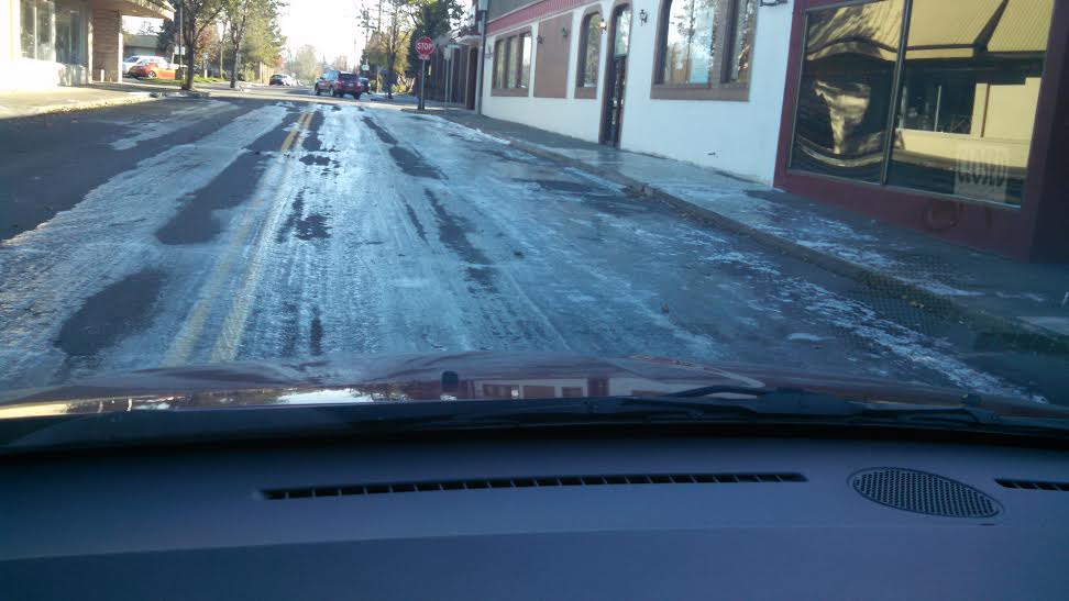 In town, there was a lot of ice. While looking for a parking space, I turned onto 2nd Street and saw this.  Since it’s in the shade, the Ice never melted. I stopped and took a photo, then slowly drove till I was out of it.