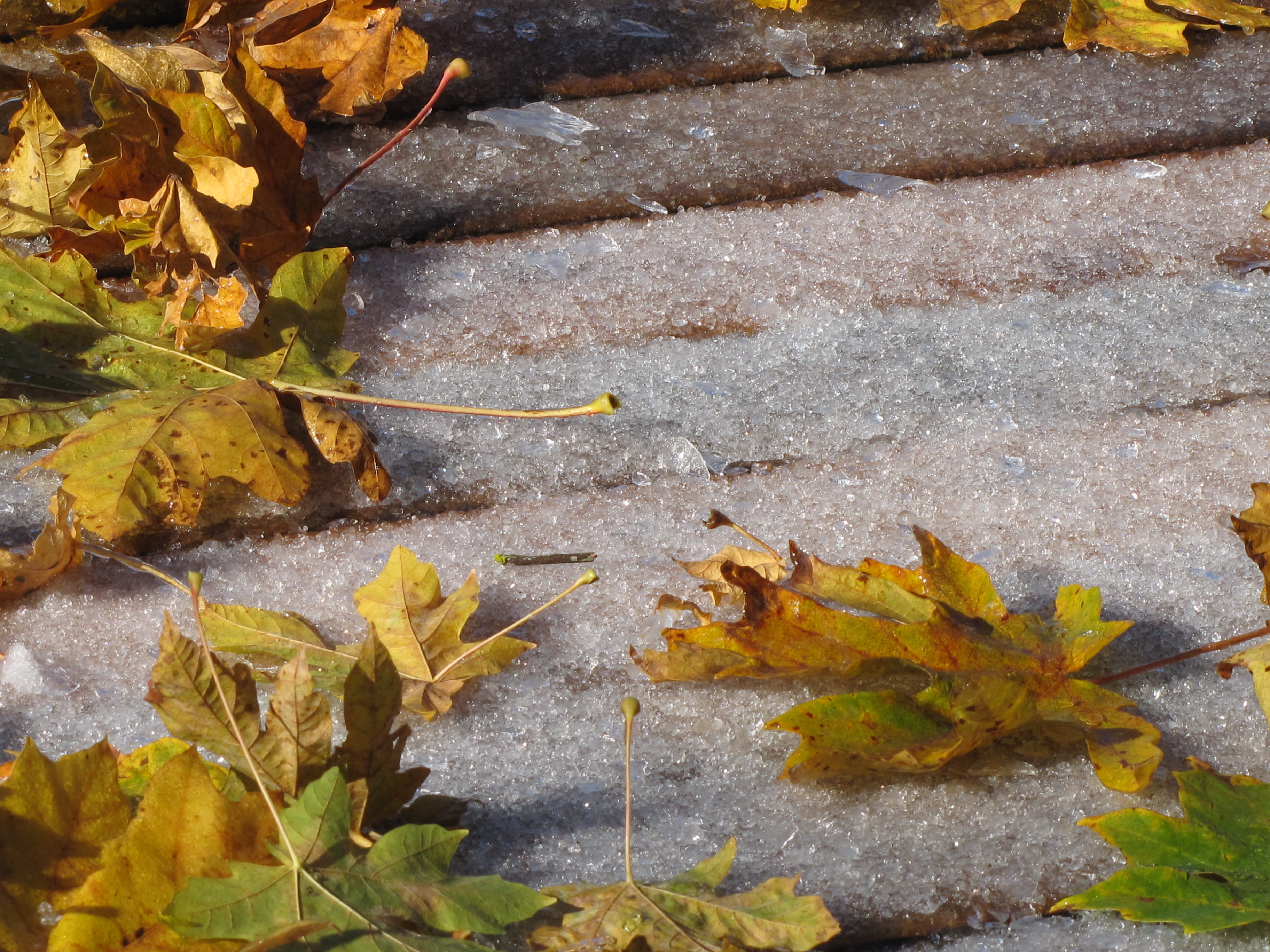 Kinda pretty da leaves ontop da ice.