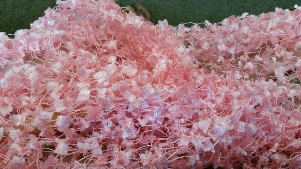 Thank you! I used a novelty yarn but don’t know the name of it. It’s like little flag things all over it; not the easiest to knit with, though, because they keep getting caught on each other! I’ll post a photo of the finished shawl tomorrow.