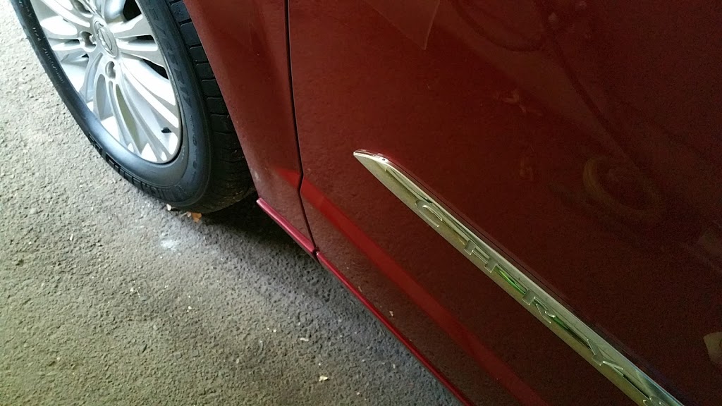 The staff at Womack did such a great job and I’m really pleased with their service. And their work carries a lifetime guarantee, too. The long scratches along one side were all polished away, and one on the other side was, too. I had no idea where that one came from; tree branches caused the ones on the left side.