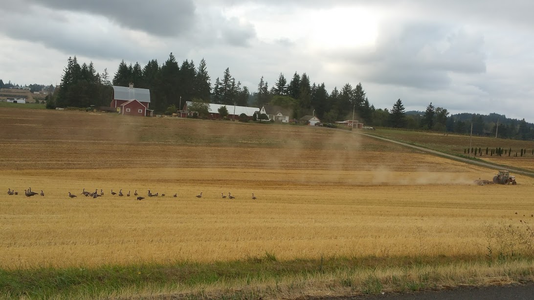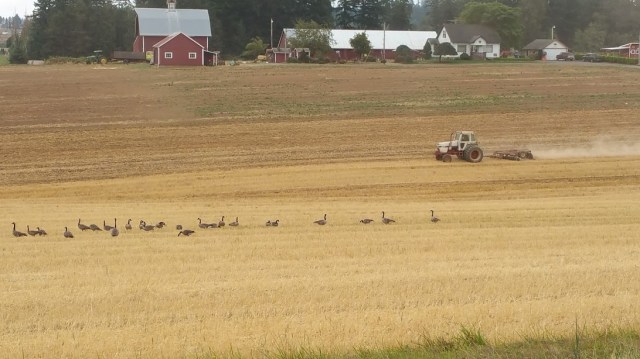 This is my favorite photo because I was able to get a bit closer to both geese and tractor.