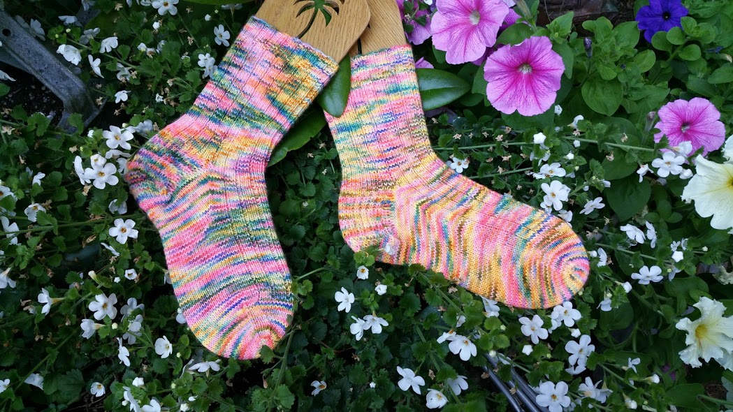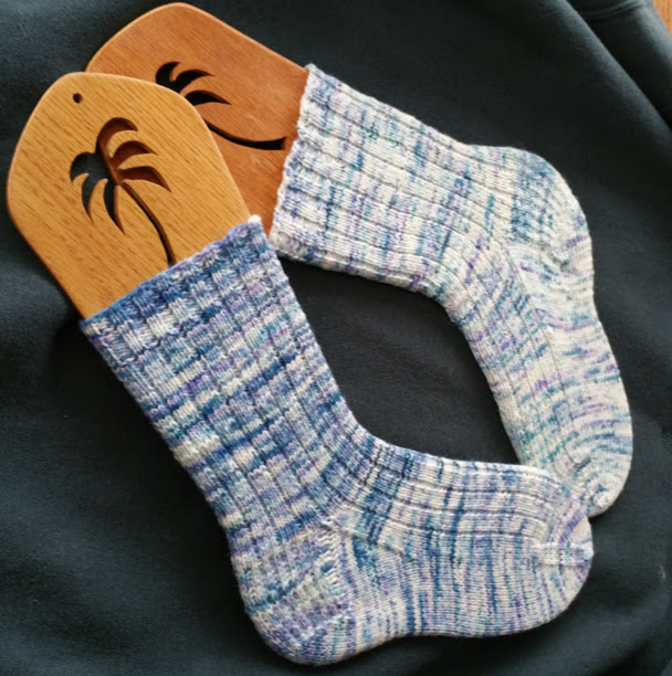 Simple socks, but I love them. I got this yarn at Apples to Oranges in Silverton; I love Mountain Colors Crazyfoot yarn. I also love fraternal socks.