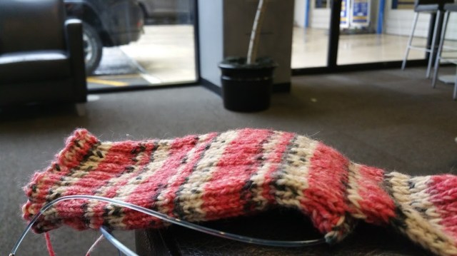 But I knit on a sock while I was there and I didn’t have to wait too long; at least my socks don’t cost that much.