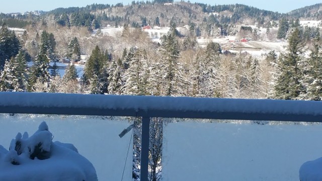 When Mark Nelsen of Channel 12 said “Snow!”, I was excited. It’s been a long time since we’ve had tons of snow…but I didn’t know exactly how much we’d be getting. Bambucha. That’s what we got! At this writing, we’ve been snowed in since Sunday (it’s now Friday). People who live below us are getting in and out, and with studded tires and a different driveway, we would’ve gotten out, too. But 1: I don’t have studded tires on my car now (because I didn’t want to pay $39.00 to get them on in February and then another $39.00 to get them taken off a week later), and 2: We couldn’t have gotten down the driveway anyway.