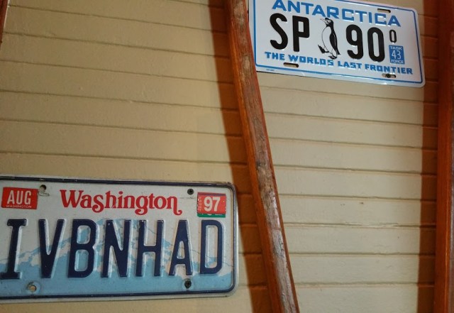 Last year my daughters took me to Big River Grill in Stevenson, Washington, for Mother’s Day. The food was ʻono to da max, and there were these license plates from all over the world on the walls. Checkum out: