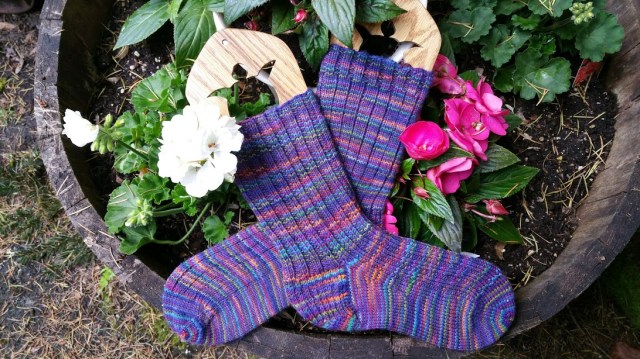 The colorway name for this yarn is Pōpoki (“cat” in Hawaiian), so of course I had to get it and knit another pair of socks with it.