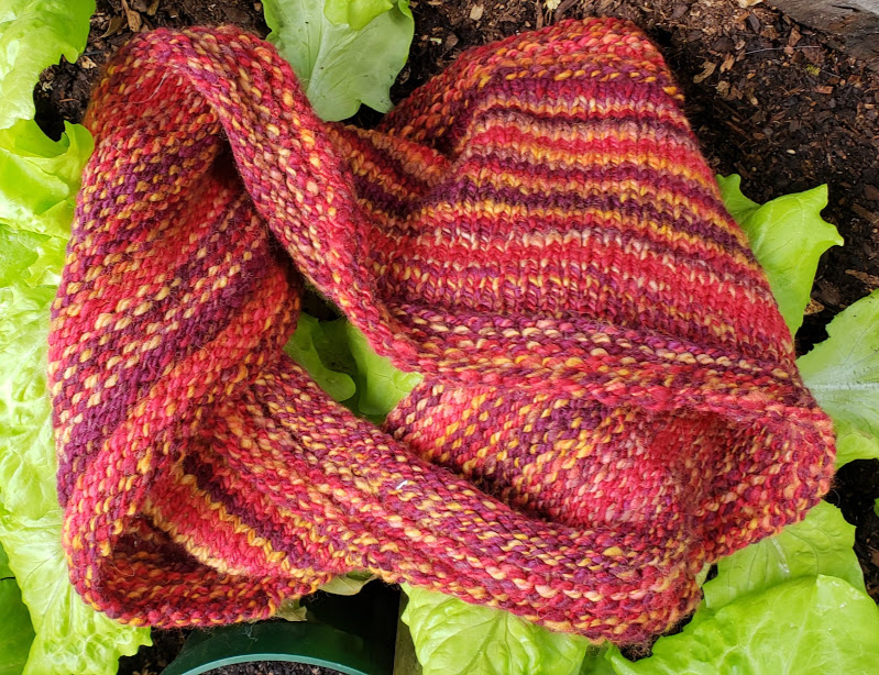 I finished a cowl. Handspun yarn, and our lettuce looks good.