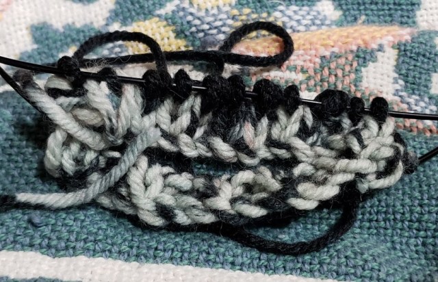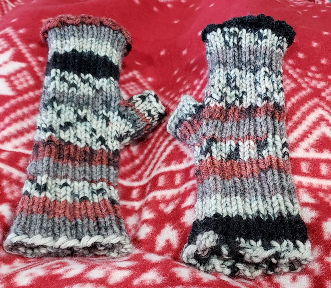 I started knitting again. A pair of handwarmers for my pharmacist.