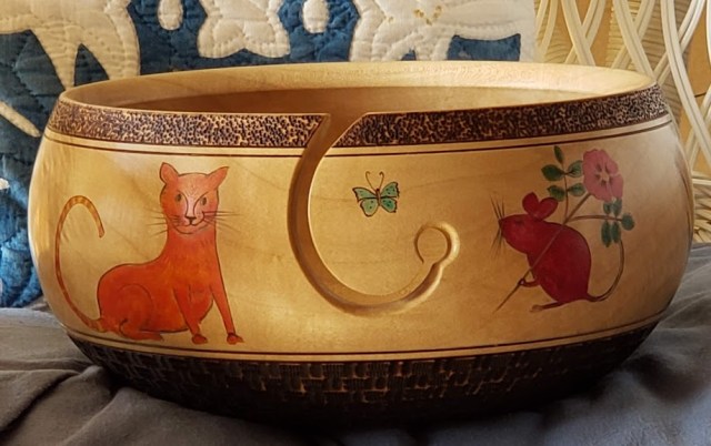Received an amazing gift from a friend (a yarn bowl, hand-crafted).