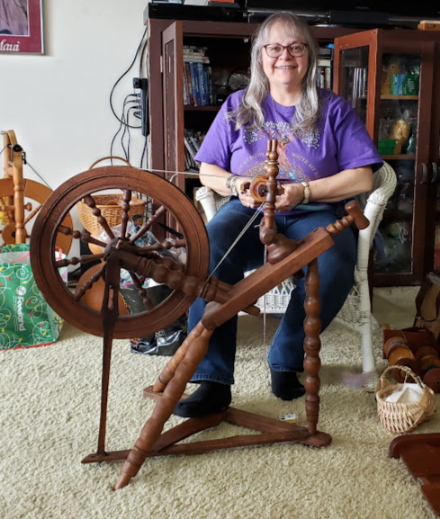 Marjorie and I participated in the Antique Spinning Wheel Showcase. She spun on my antique wheel since I couldn’t do it yet.