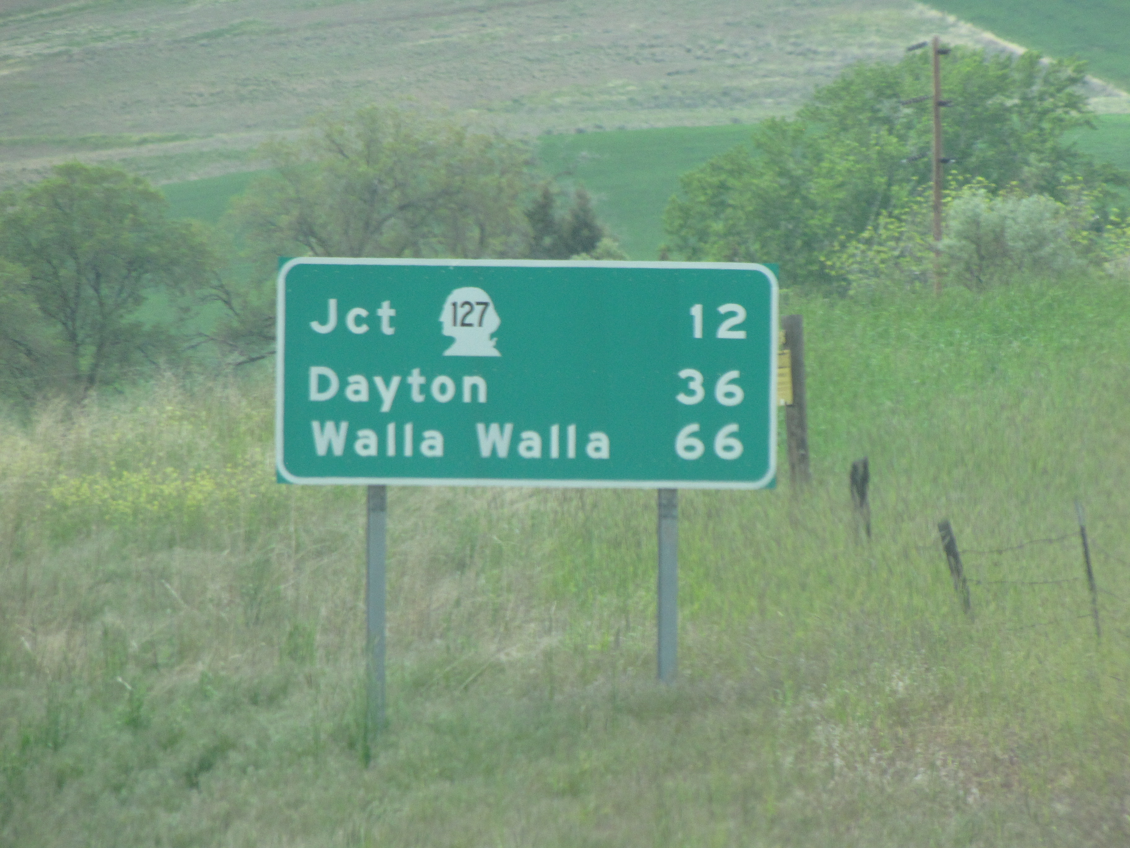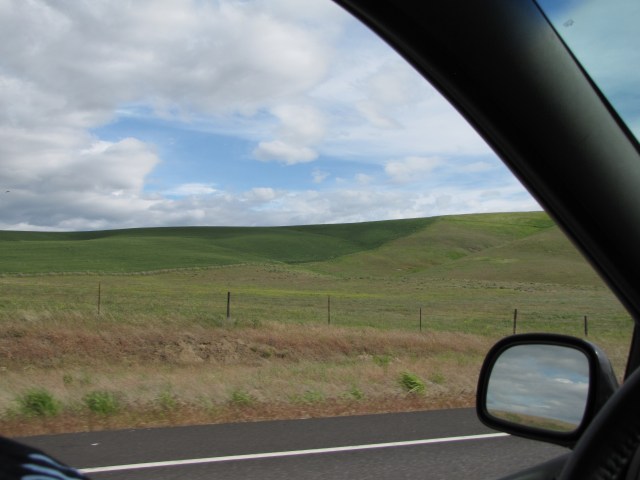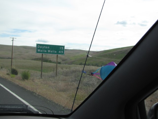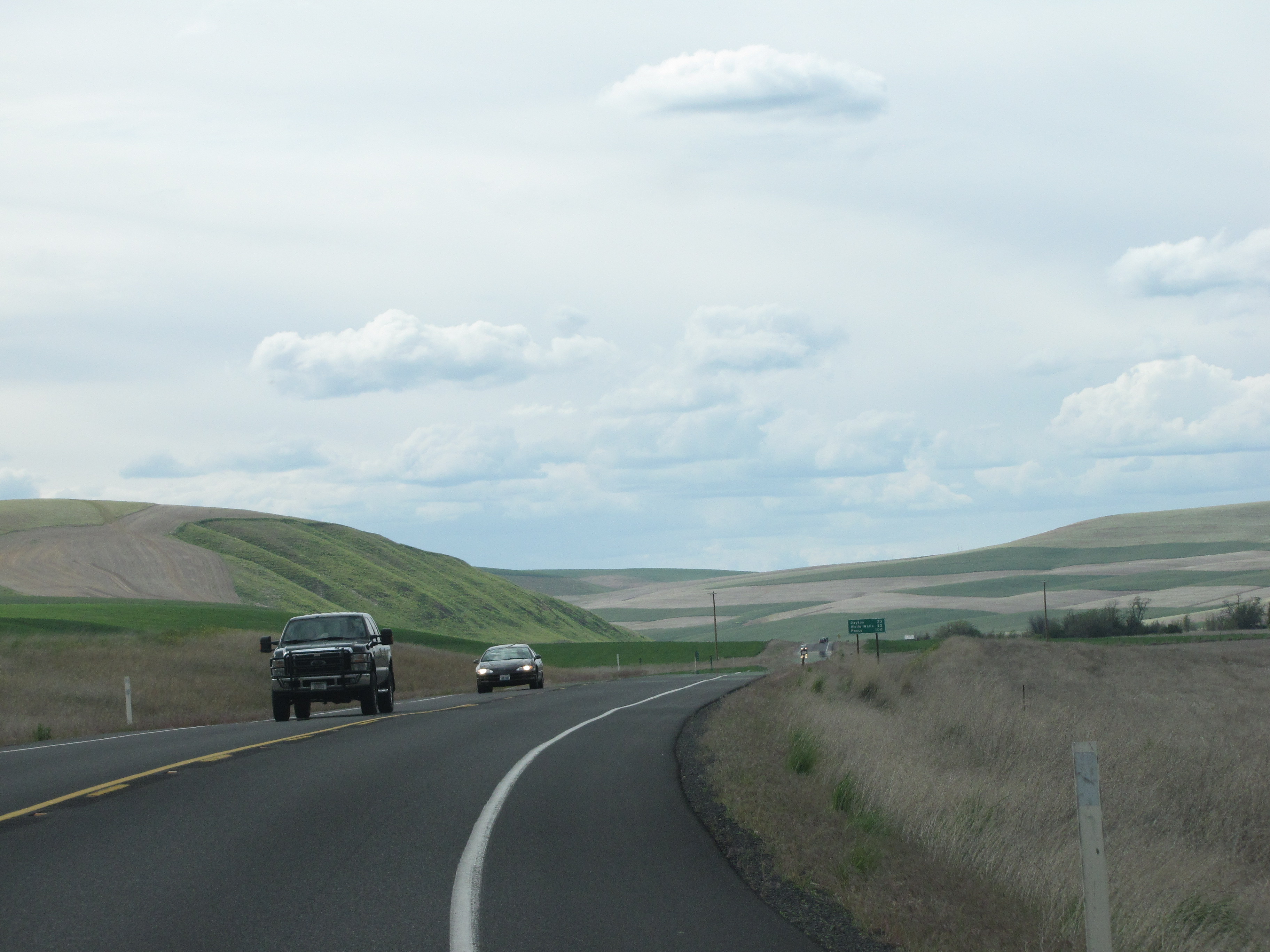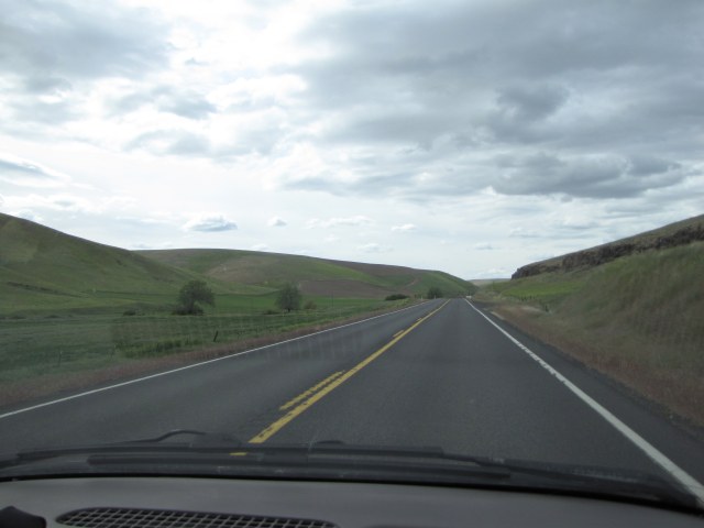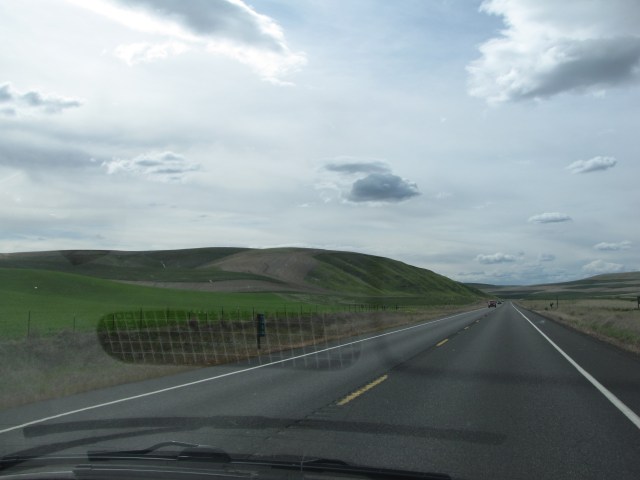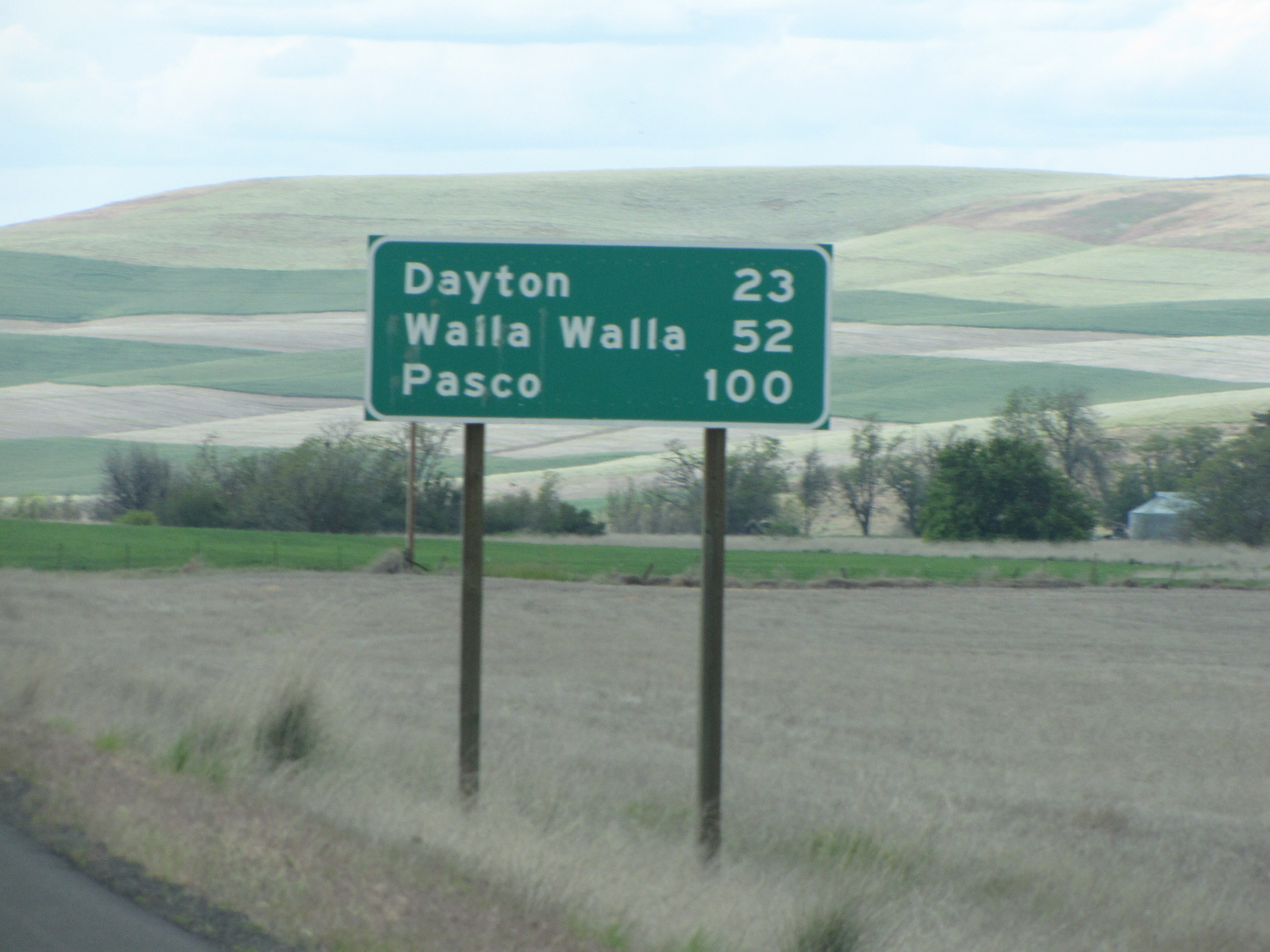 The Palouse country is really opening up now. If I’m reading the blurry sign right, it says, “Dayton – 23 miles, Walla Walla – 52 miles, Pasco – 100 miles.”