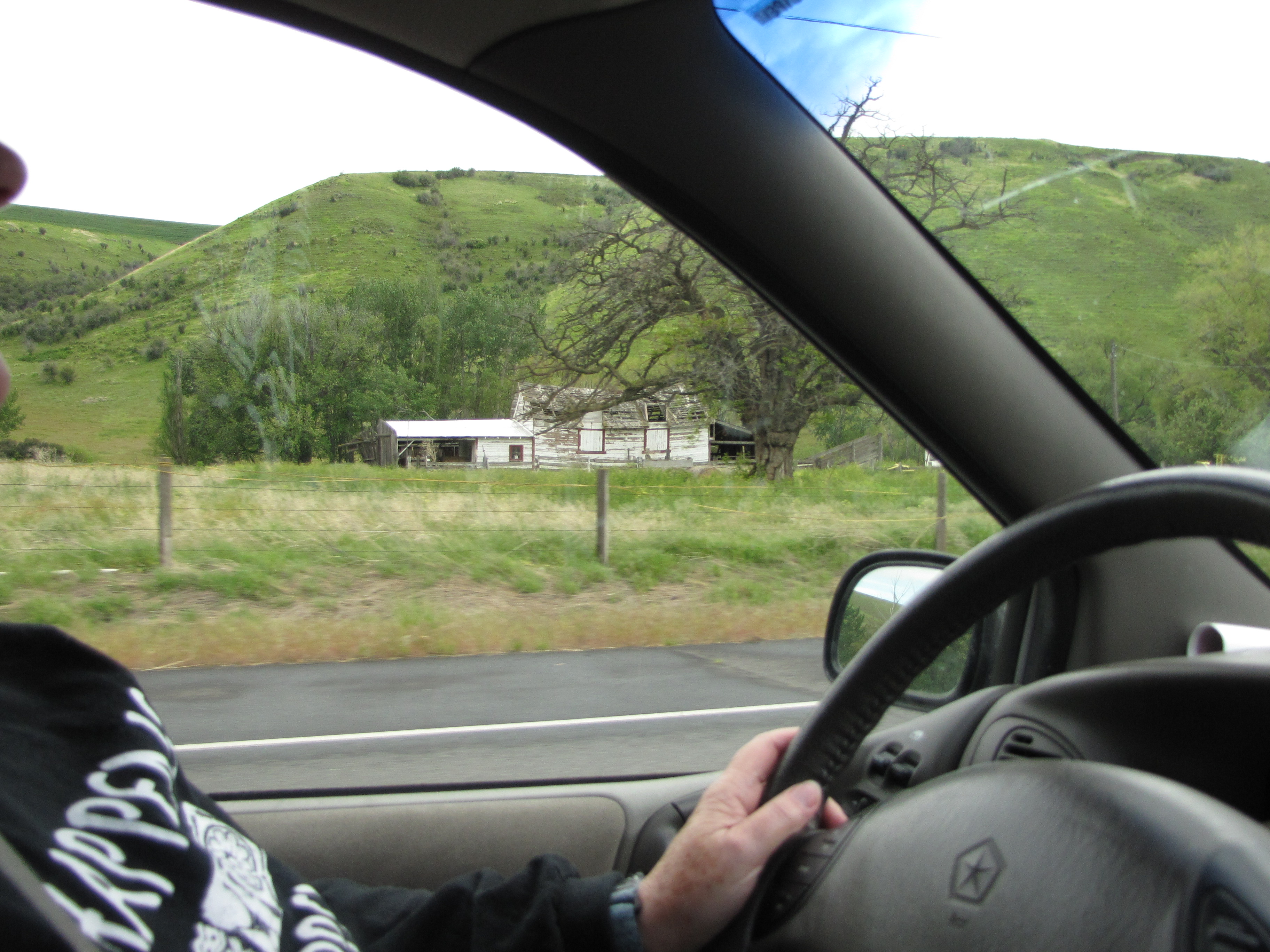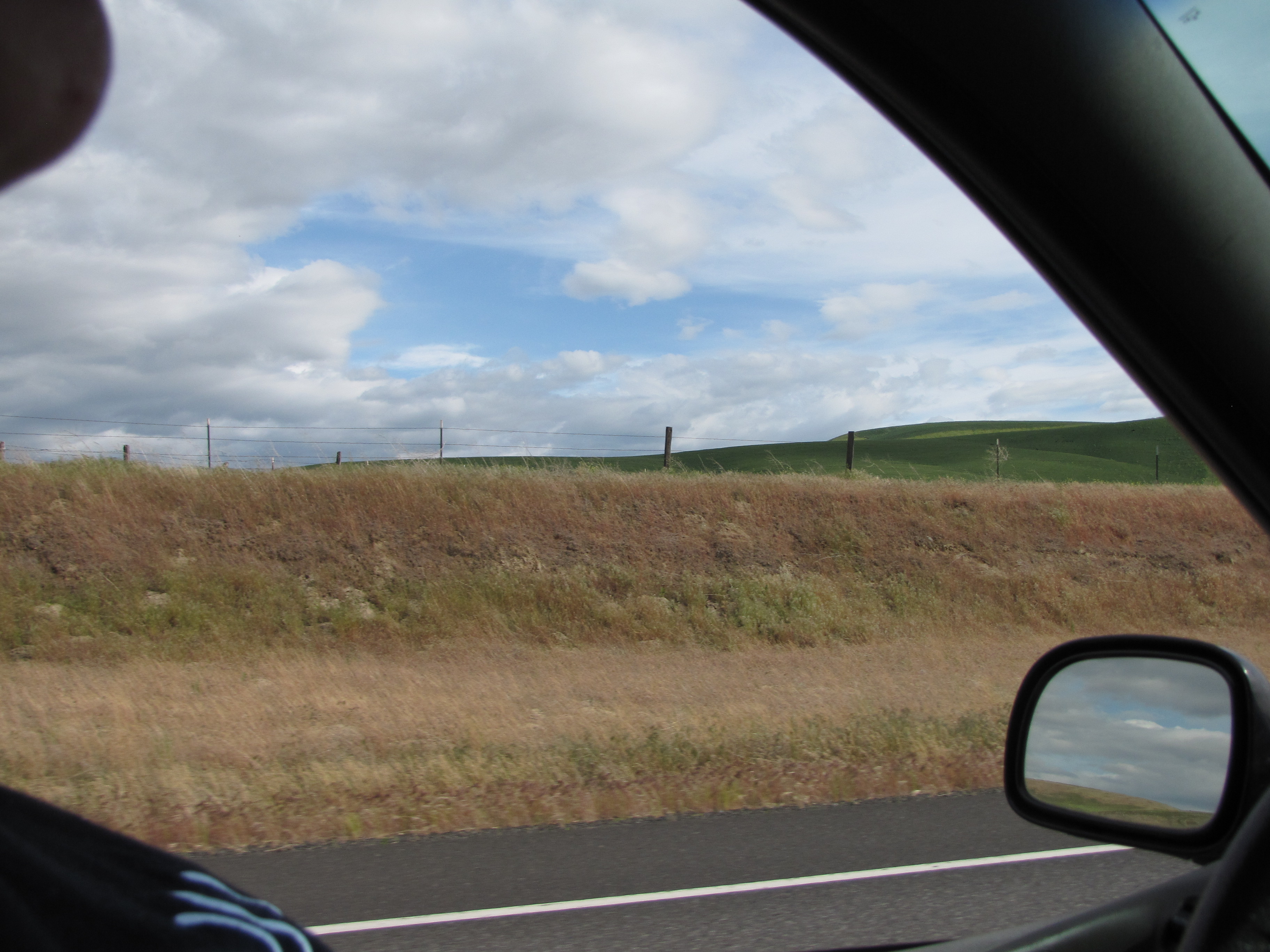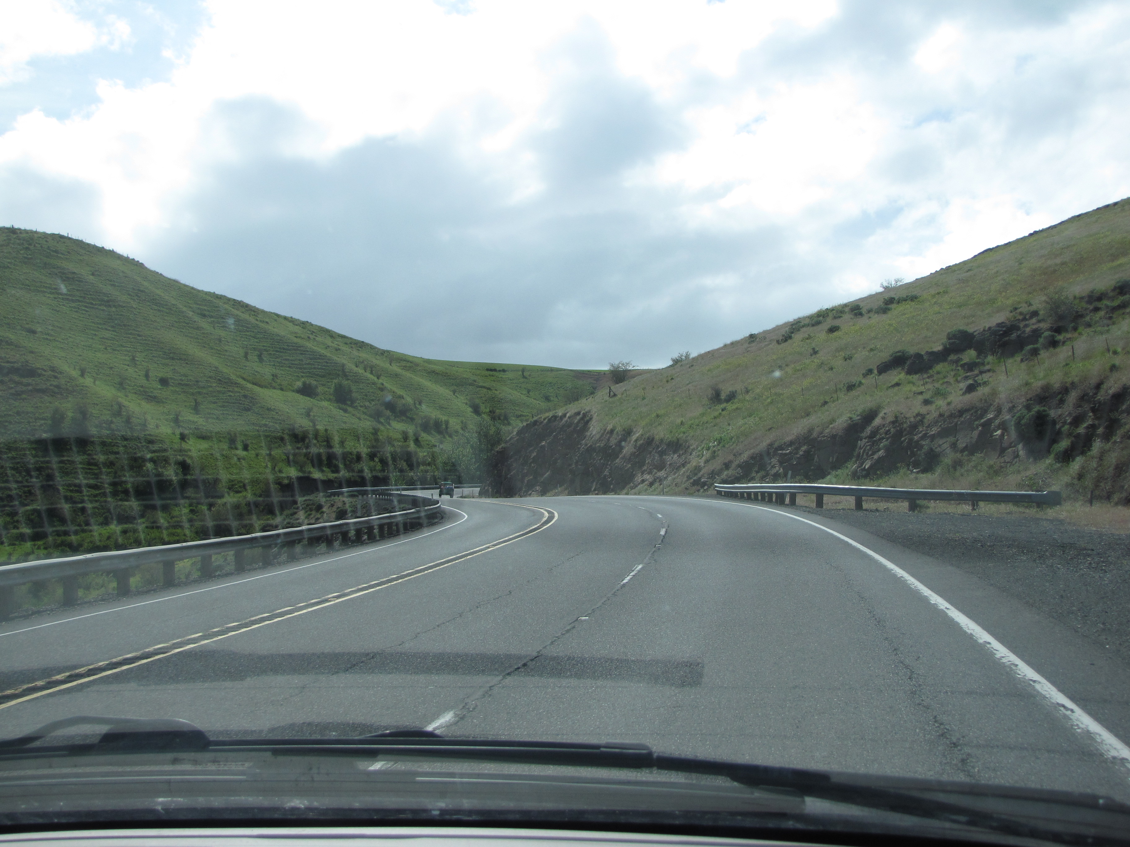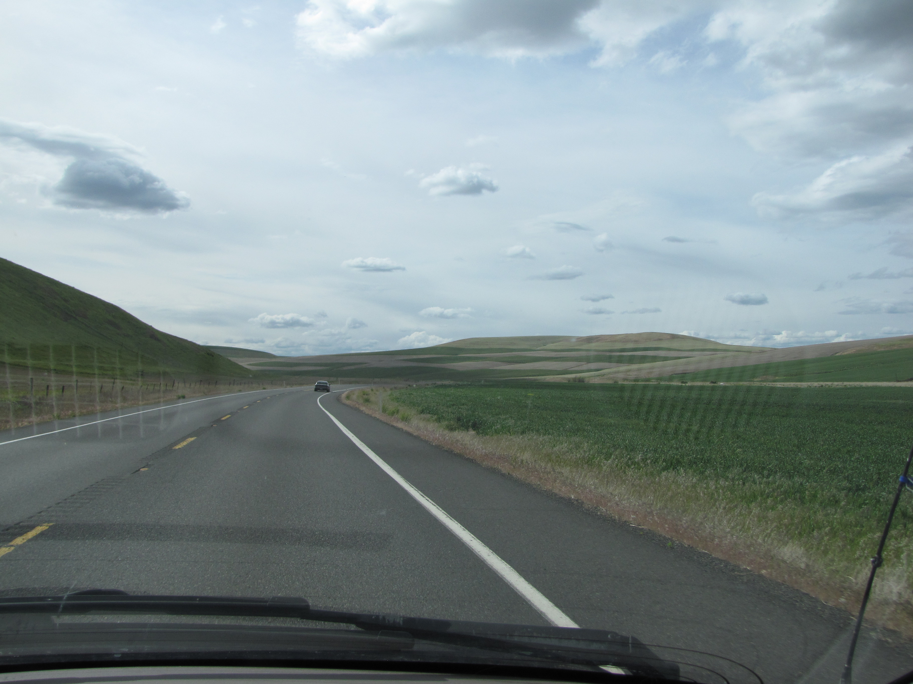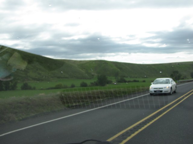 The Palouse country is really opening up now. If I’m reading the blurry sign right, it says, “Dayton – 23 miles, Walla Walla – 52 miles, Pasco – 100 miles.”