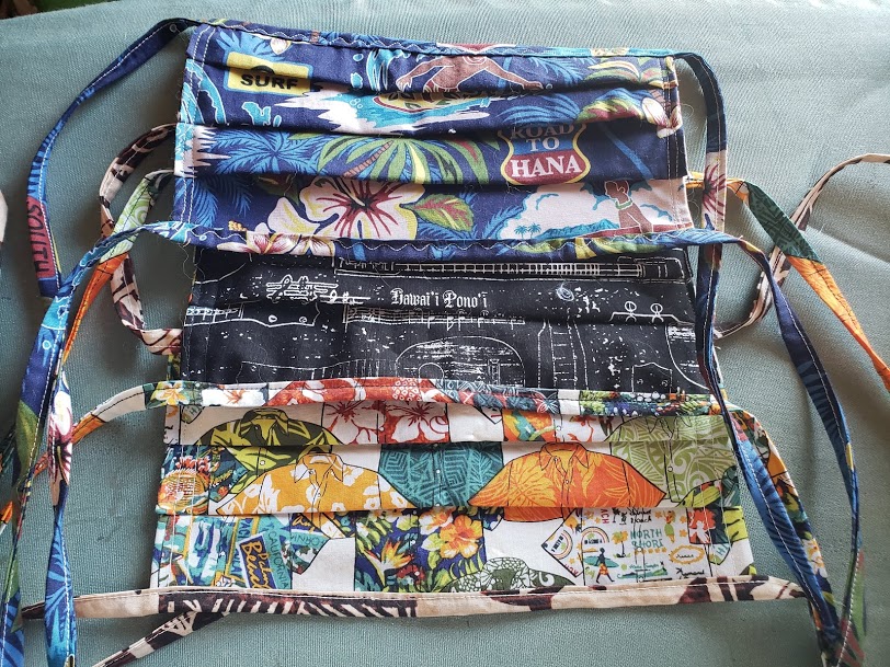 I’ve made masks for a friend going through chemo; his wife asked for Hawaiian kine material, and I found some cool ones online.