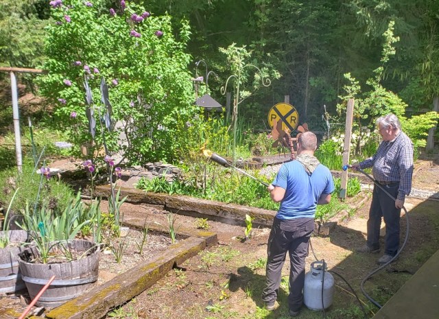 Nolemana and Josh, our wonderful helper, burned down some evil Japanese Knotweed. It was here when we first moved here, and is a horribly invasive, unwanted species, and little by little we’ve managed to mostly eradicate it.