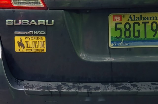 Back at the parking lot, we saw this car…here all the way from Alabama and Yellowstone.