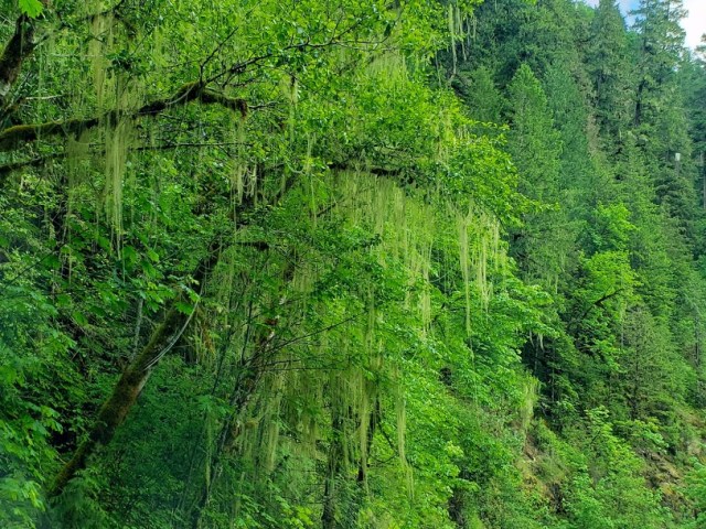 We got back into the car and drove up Fish Creek Road some more. Moss was hanging from the trees in the shady places.
