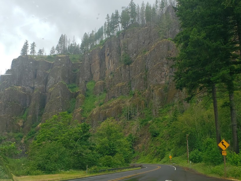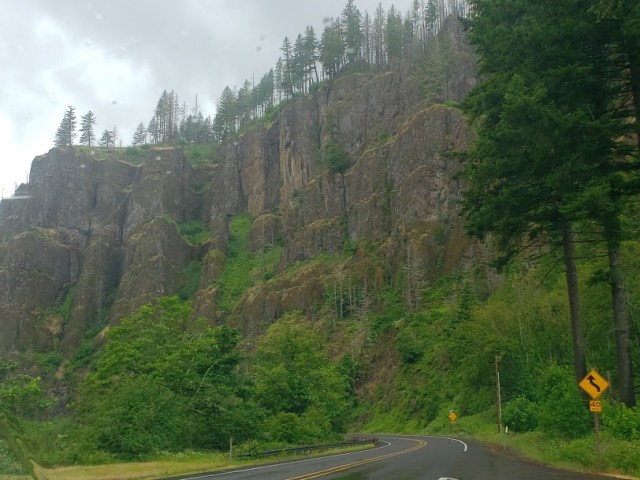 The rock wall around the highway curved around us. It was pretty awe-inspiring. See the trees growing out of it?
