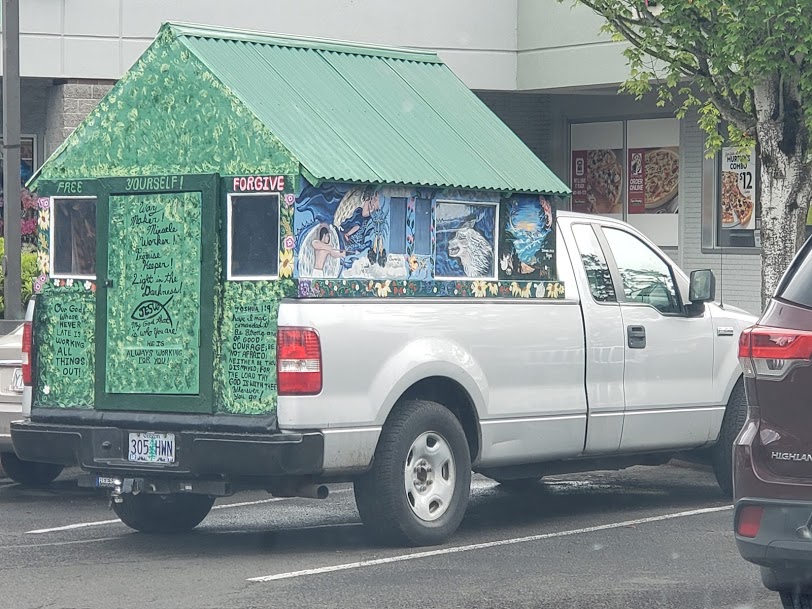 We haven’t had pizza in a very long time, and stopped at Papa Murphy’s in Damascus to get one. We love their Deluxe Vegetarian one. In the parking lot, we saw this cool rig.