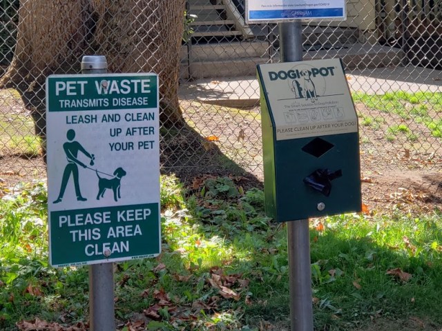 Several people had their dogs with them, and this was a convenience for them.  Dogi-Pot. Kewt, yeah?