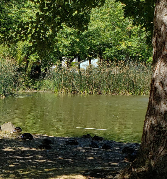 Here you can see the two fountains. Maybe making lullabies for the ducks? We were here just after one p.m.