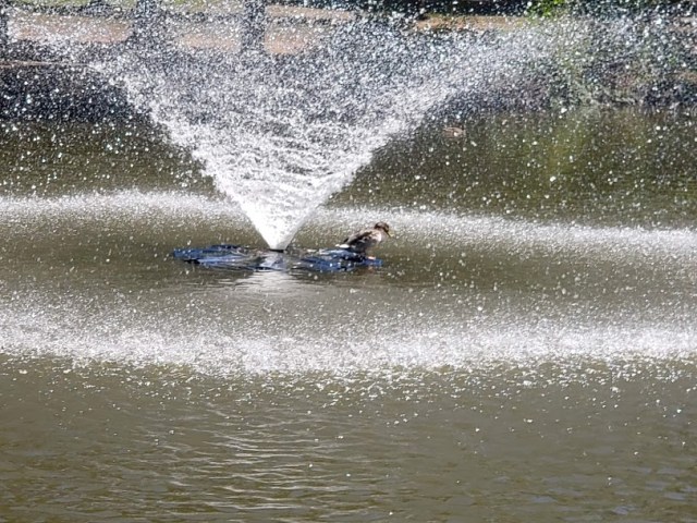 And try look this duck standing in the spray of the fountain!