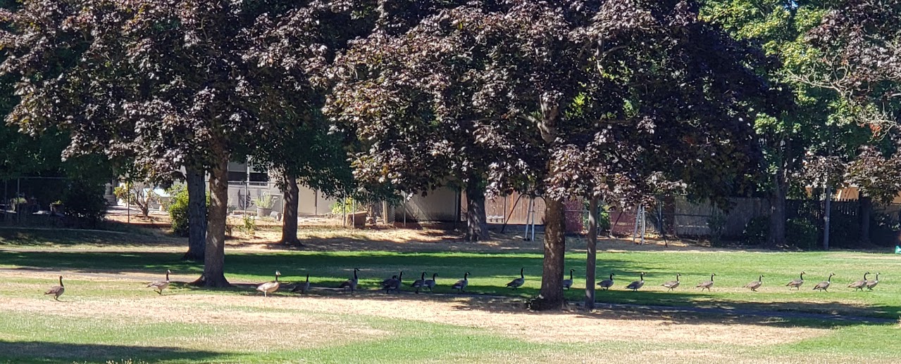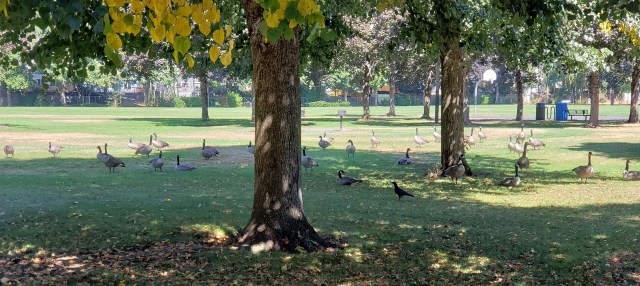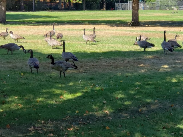 We left the gazebo, rounded a corner, and wowzie!! So many Canada Geese! Not napping.