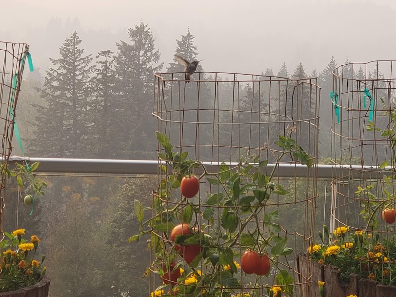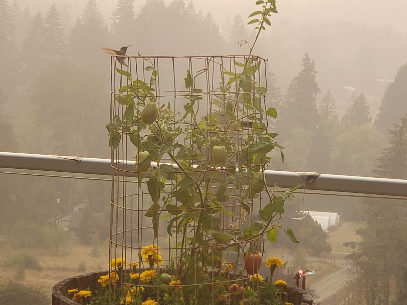 The hummingbird still took up its place on our tomato cage. It was so weird…it’d sit there, beating its wings like crazy, holding on with its feet. It’d do this all day long.  I wish it could’ve told me why. This went on for several days.