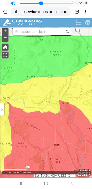This was also difficult to see: our veterinarian has her office right at the junction in Carver, and the Level 3 evacuation zone was right across the road!