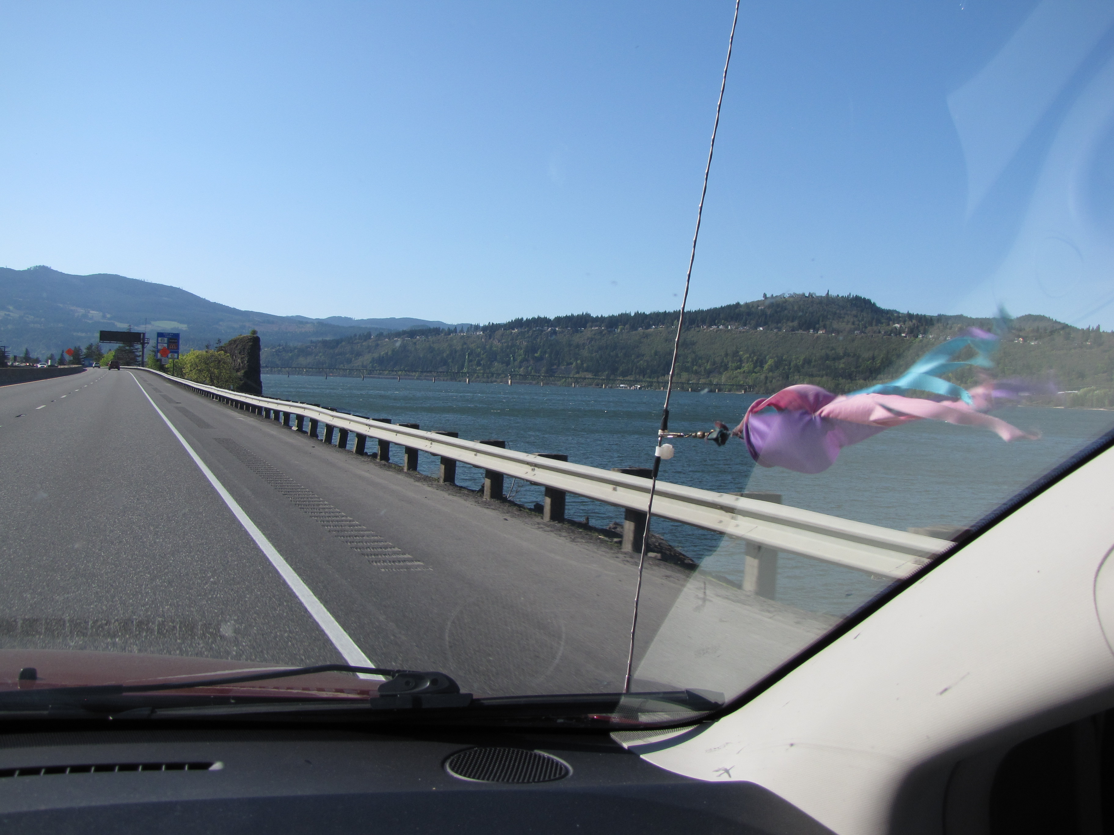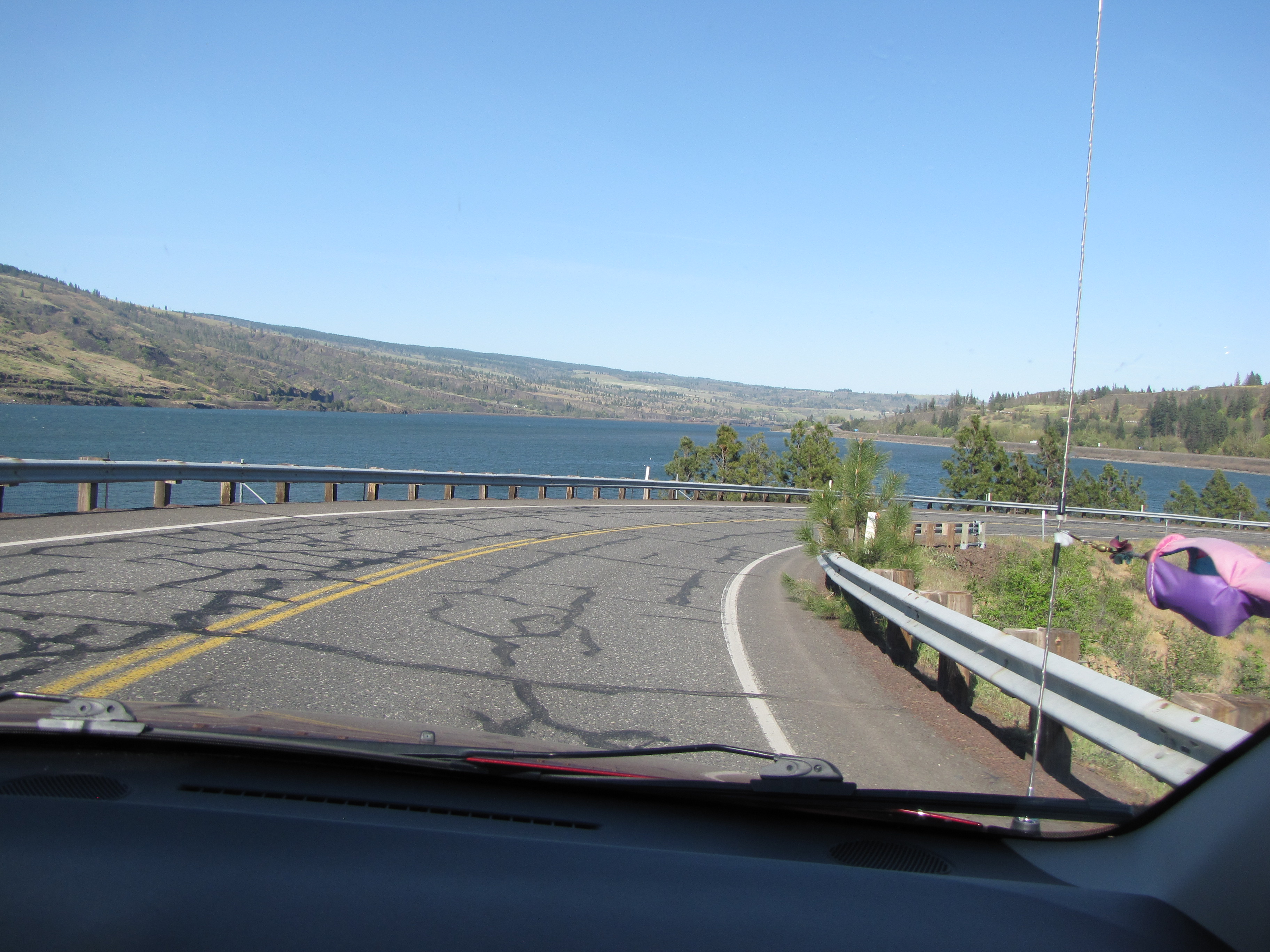 Here we are on the onramp to Interstate 84, about to head makai towards home, with the Columbia River right next to us.