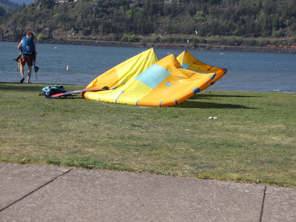We decided to hop off the freeway at Hood River so that we could watch the windsurfers. I’d never seen one close-up before and hadn’t realized how big they really are. There didn’t seem to be a lot of surfers in the river, so we must’ve gotten there at a “pau hana” time.