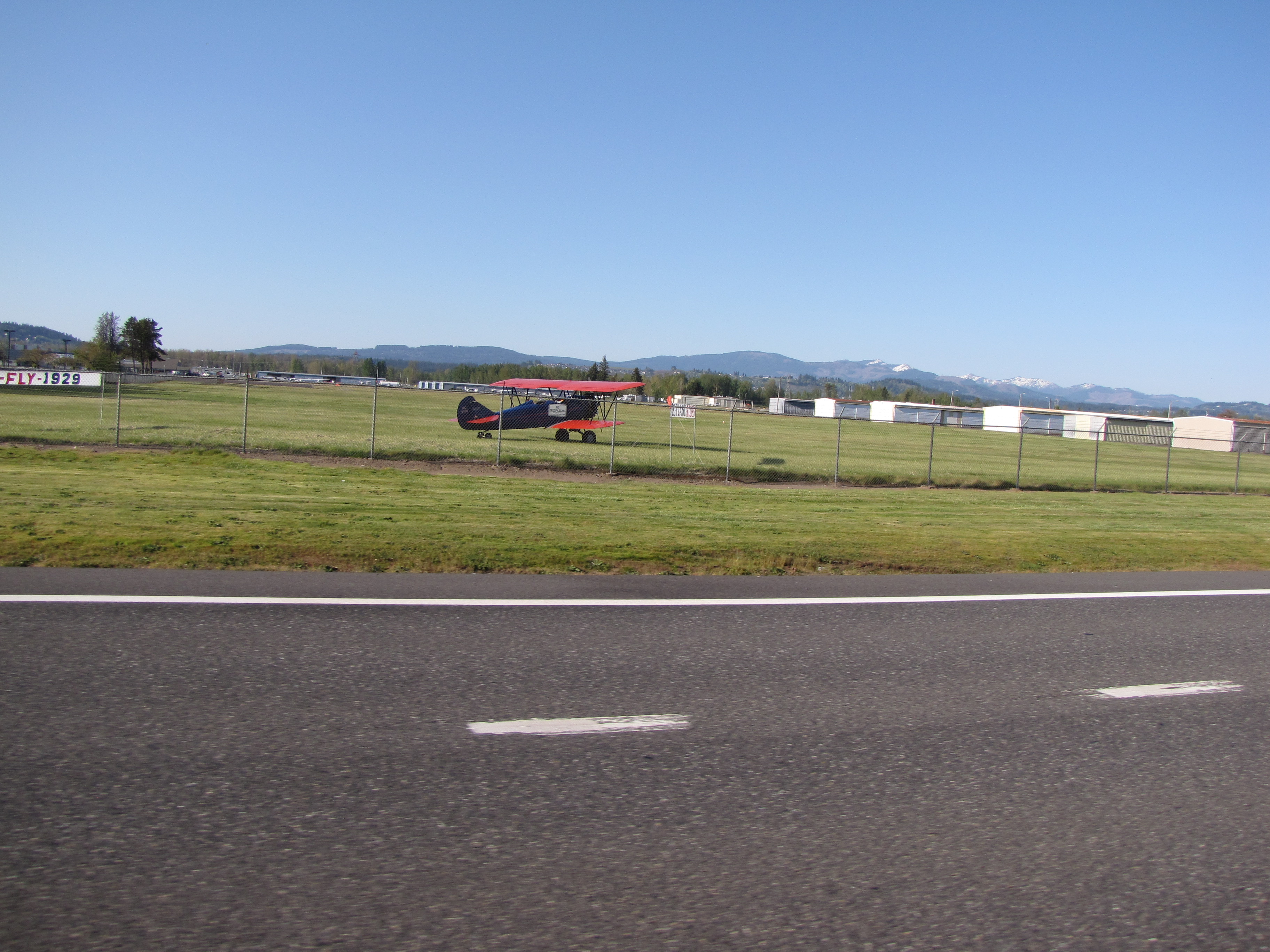 We got off the freeway at Troutdale, and saw this sign as we drove by the Troutdale Airport. Would I go up in one of those? Nope. Flying on a regular jet is always a white-knuckle thing for me, so riding in a biplane would not be for me. I do love looking at them, though.