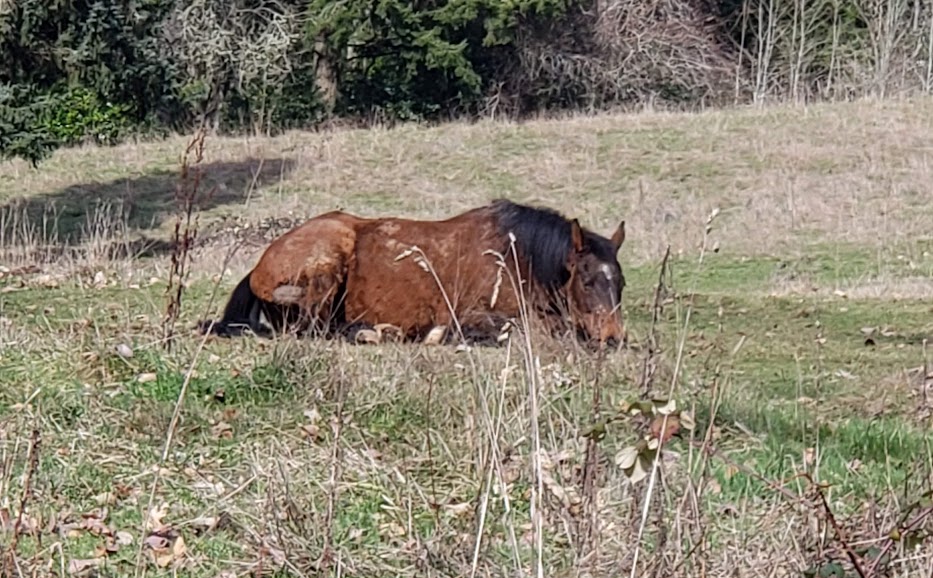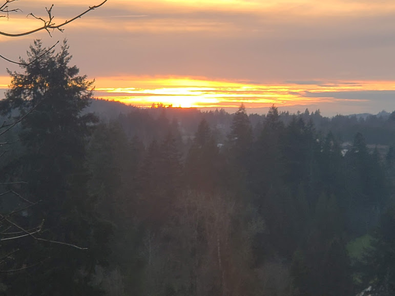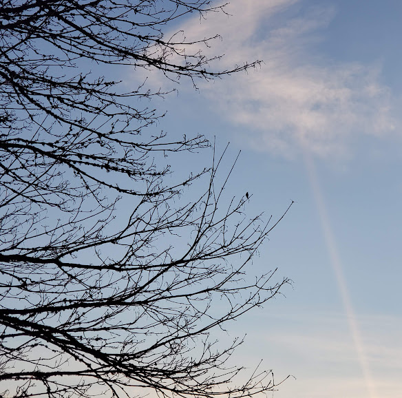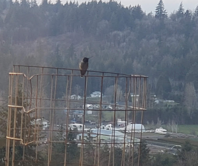 Miss B. resting in the sunshine.Daffodils coming up!Christmas cactus blooming again. Ack!! Gonna get piled on. Nah nah. I was waiting in the car for our lumber and this stack was getting loaded onto the trailer next to me.For fence repair. Good thing I have a van!Daily hummingbird.Test: Find the hummingbird!Another cold and lovely sunset.
