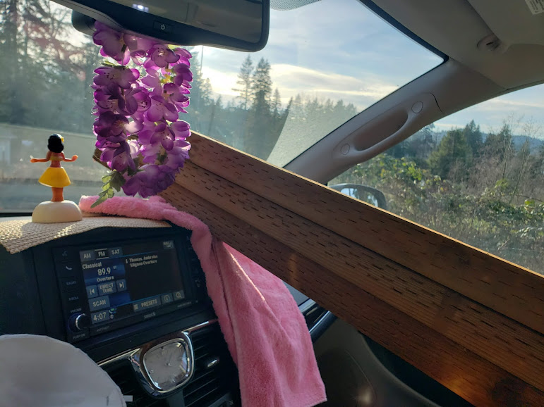 Artsy daily hummingbird wing.The real daily hummingbird.I got to the green section of the braid.Really cool tire da kine on the rig in front of me!