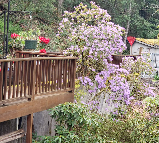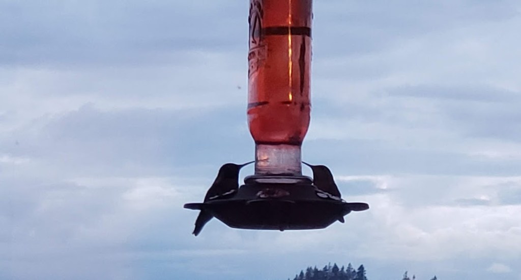 I’m so glad your rhodies and azalea survived! That heatwave was no joke, for sure. I *love* that birdsong recognition app! We have white-crowned sparrows in our neighborhood too. We call them the “piggy wiggy bird,” because to our ears, it’s singing “I’m the piggy-wiggy bird!” (Experts say its call is “see me, pretty pretty me!”) And it’s so neat that your hummers are able to co-exist. Maybe it’s mating season? Thanks for sharing!