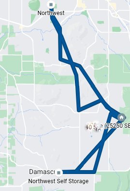 Heading down our driveway for deliveries. Lots of cottonwood fluff coming down. And nope, I don’t spin it!