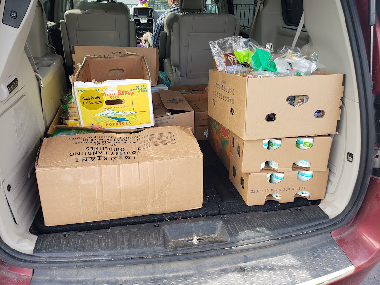 All loaded up for deliveries. We never know what we’ll get each week. This week, there was lots of yogurt and lettuce and other goodies. Big bags of masa flour, too.