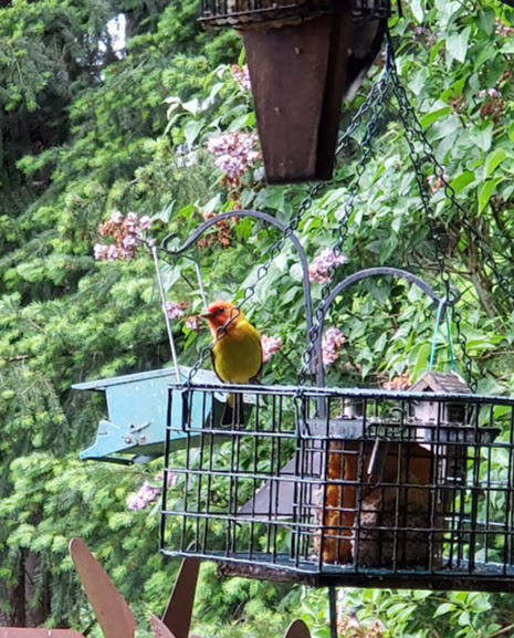 Daddy Tanager feeding his son. Sorry so blurry…they move so fast!