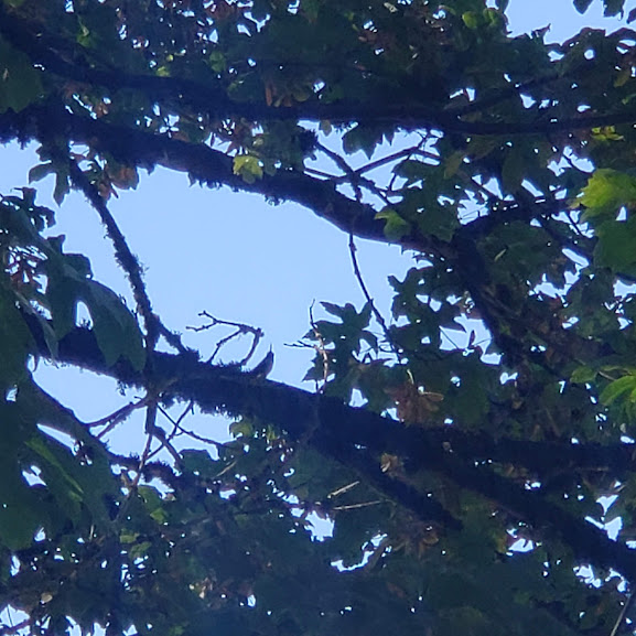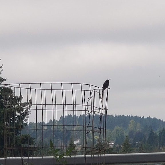 K’den, you guys. I am so pleased with these photos. I was sitting out on the lānai and heard the hummingbird flying by. I started looking for him, and shazam! I got all these wonderful photos. Can you see him?