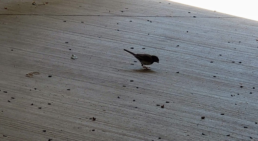 Dark-eyed Junco at the park; I bring seed for the birds here.