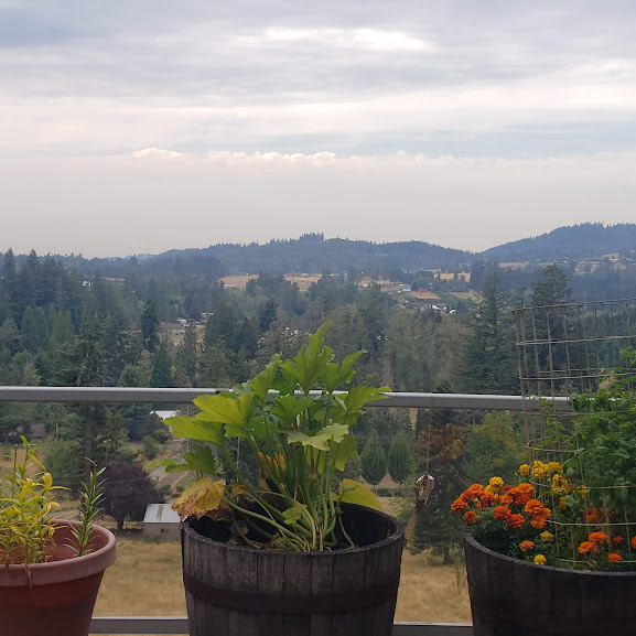 Blooming flowers and zucchini on our lānai. Cloudy…we’re hoping for rain that never came.