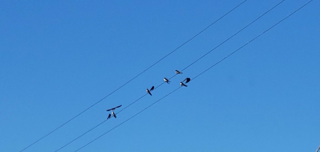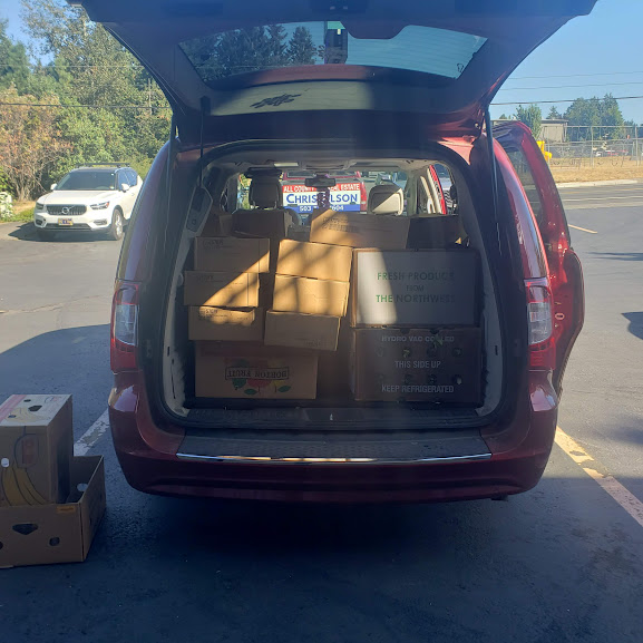 Daily hummingbird.Zooming daily hummingbird.Food deliveries Dave unloading the pickup.Lots of grapes and Asian salads today.And lots of butter!We even had stuff in the middle seats this week! Our recipients will be so happy!This ginormous combine was a new arrival at one of my stops for the farm workers.Barn swallows flitting around at the same stop.This trumpet vine at my fourth stop is getting these huge pods on it.Uh-oh. I got this notification tonight. This is scary, especially remembering what happened two years ago.