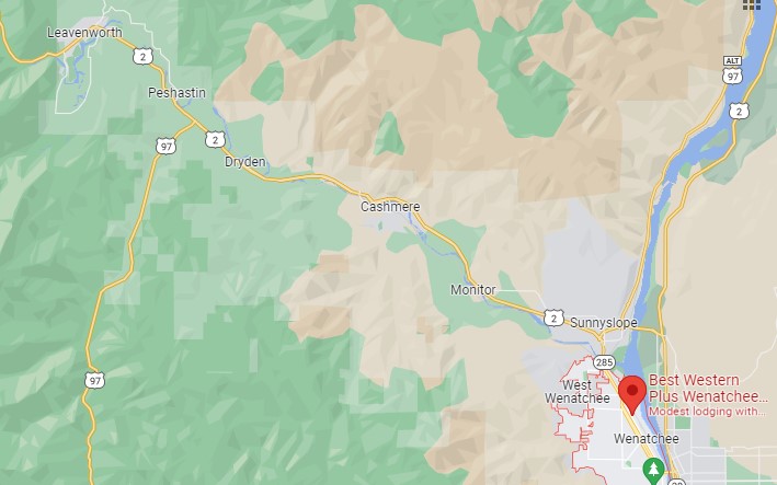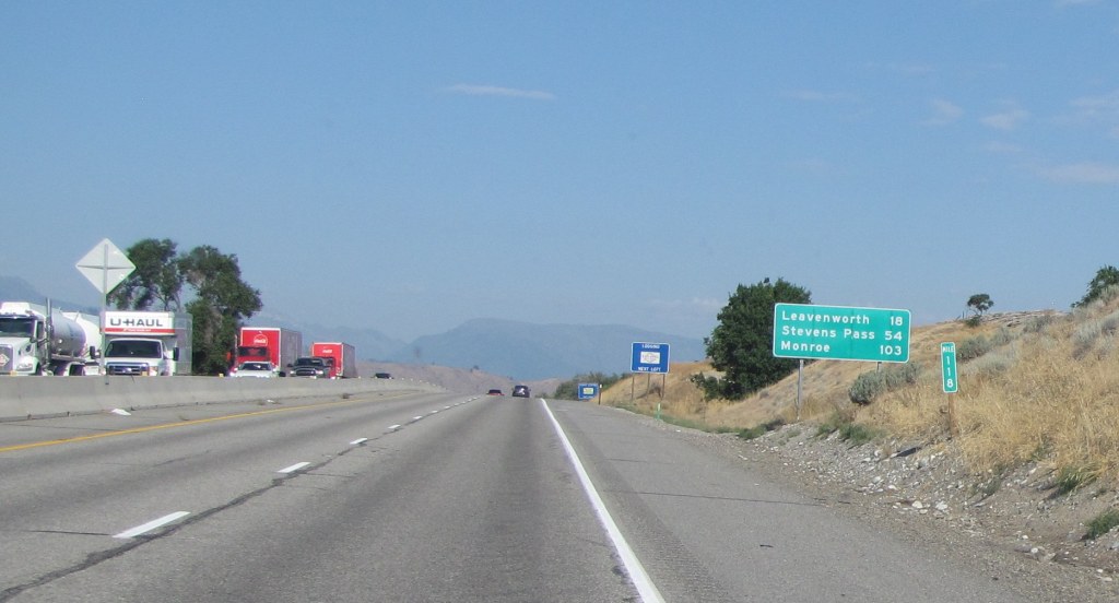 Crossing the Wenatchee River on our way north.Back we go towards Leavenworth.I always think about soft garments and yarn when I see the town of Cashmere’s name. Of course I do.Eighteen miles to Leavenworth.9:14 a.m.Monitor Hot Rod Café. That would’ve been a fun place to stop.