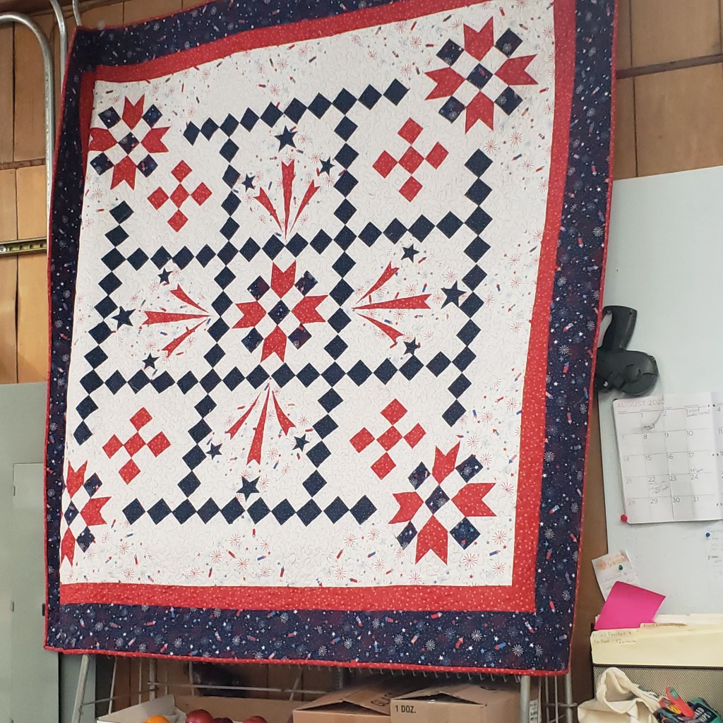 I admired the beautiful quilt behind the counter, and the owner let down the rope gate and let me get a closer look at it. The wahine who made the quilt was there, too, and she let me take a photo of it!