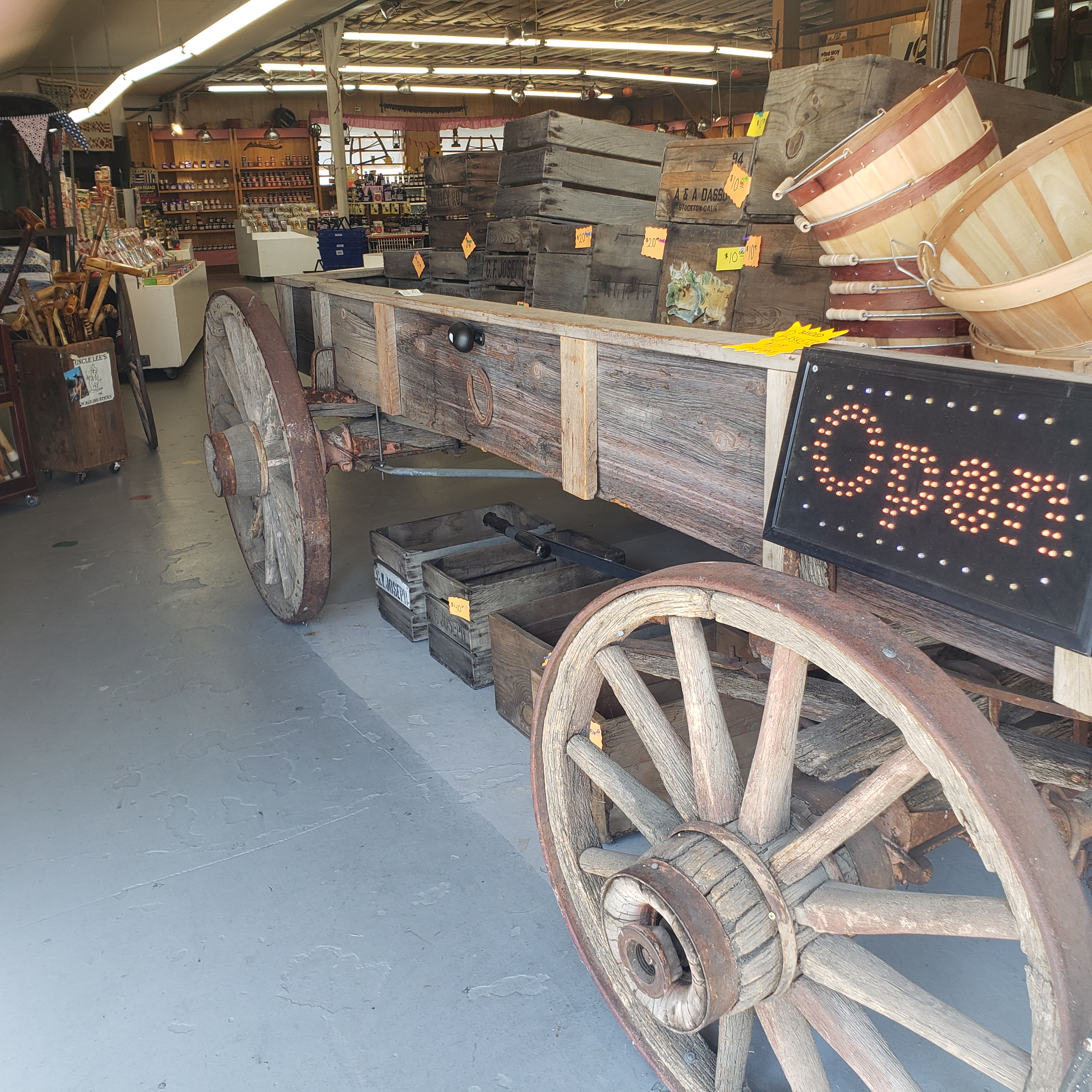 I loved this old wagon filled with fruit baskets.
