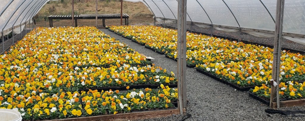 Gorgeous pansies at the nursery where I deliver groceries.